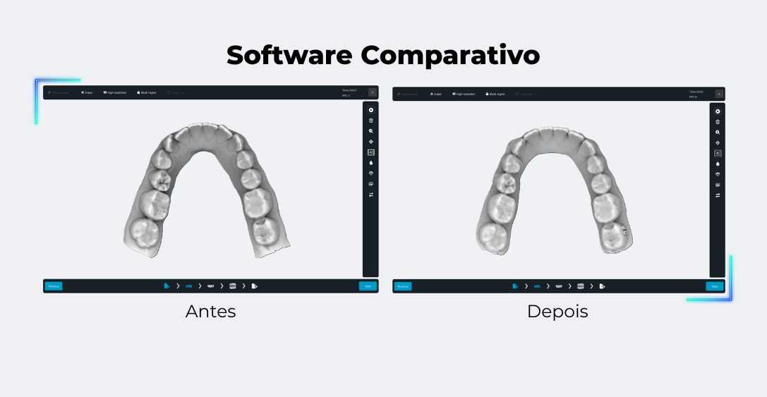 El sistema Eagle Scan utiliza un software intuitivo y completo, desarrollado a nivel nacional, diseñado para ofrecer precisión y fluidez en el escaneo digital. Mediante tecnología de inteligencia artificial (IA), el sistema reconoce e ignora automáticamente estructuras no deseadas, como las mejillas y la lengua, optimizando el tiempo y brindando mayor comodidad durante el procedimiento.