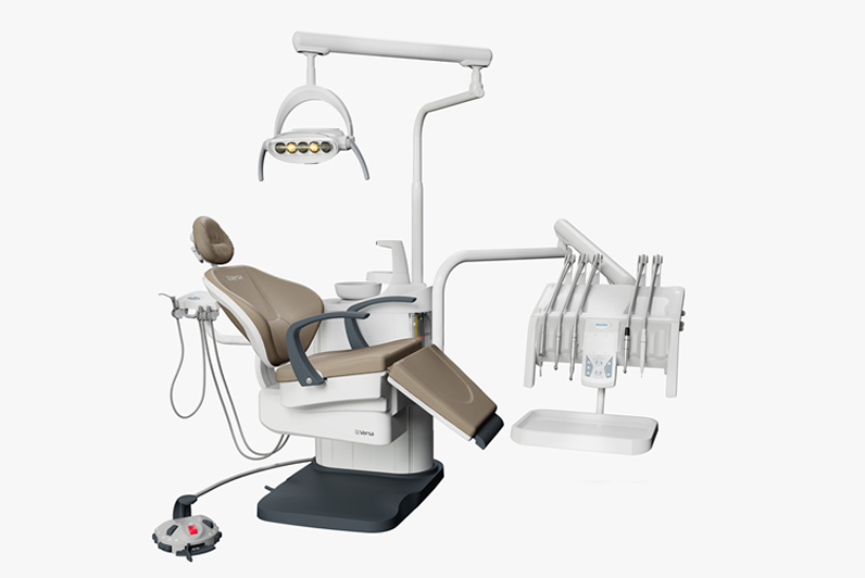 - Brazo articulado: brazo articulado con movimientos horizontales y verticales, activado por un botón situado en el cuerpo del módulo dental